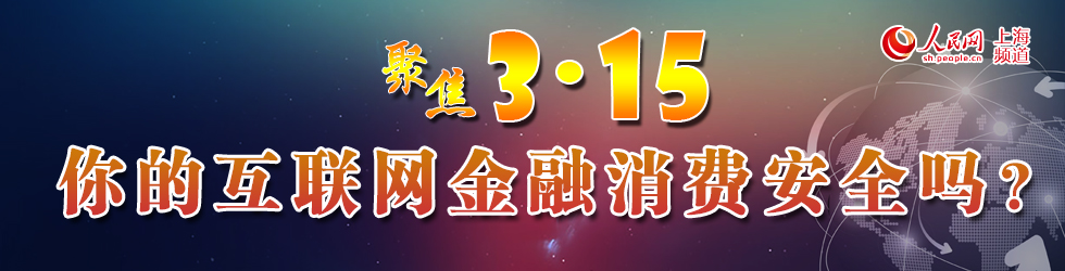 • 人民網 >> 上海頻道 >> 專題 >> 3·15 你的互聯網金融消費安全嗎?