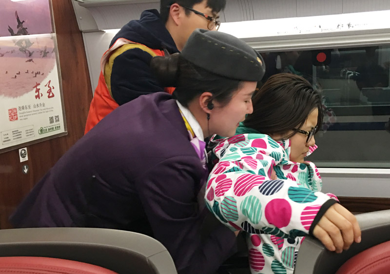 人民網上海2月18日電 (唐小麗、楊子)2017年春運已經接近尾聲,春運期間,勞模陸偉麗來到多趟列車上進行跟車作業指導,為乘車兒童貼上防走失貼,向乘務員傳授旅途防疲勞按摩操,向旅客介紹列車安全乘車注意事項等,同時根據春運大客流的情況制定出有針對性的系列服務舉措,受到旅客好評!