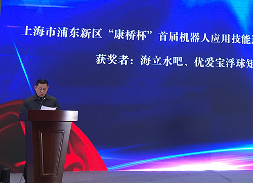 浦東新區科技和經濟委員會黨組書記孫慶祥宣讀了“關于上海市浦東表彰‘康橋杯’首屆機器人應用技能邀請賽新區獲獎團隊的決定”,揭曉了“觀眾最喜愛的機器人”![詳細]