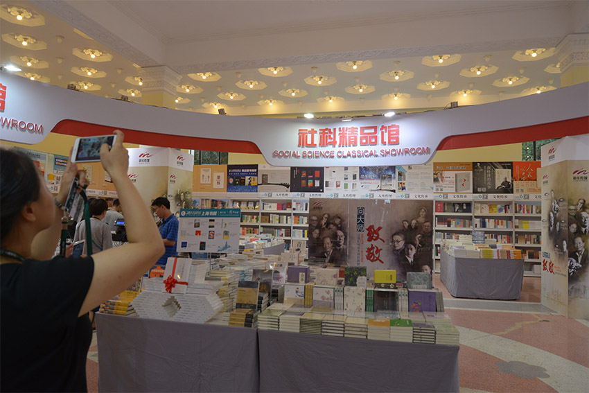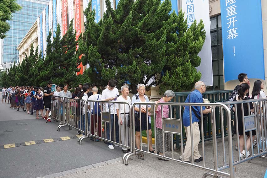 16日,以“我愛讀書,我愛生活”為主題的2017上海書展暨“書香中國”上海周在上海展覽中心正式開幕。今年的上海書展云集了15萬種精品圖書,開展940多場活動,聲勢浩大,內容豐富。 早晨九點開館時,記者注意到各入口處排隊的市民已達數百名,不少家長領著孩子早早趕來品味此次文化盛宴。組委會特意在入口處設置噴霧降溫裝置,幫助書迷們排解夏日酷暑。