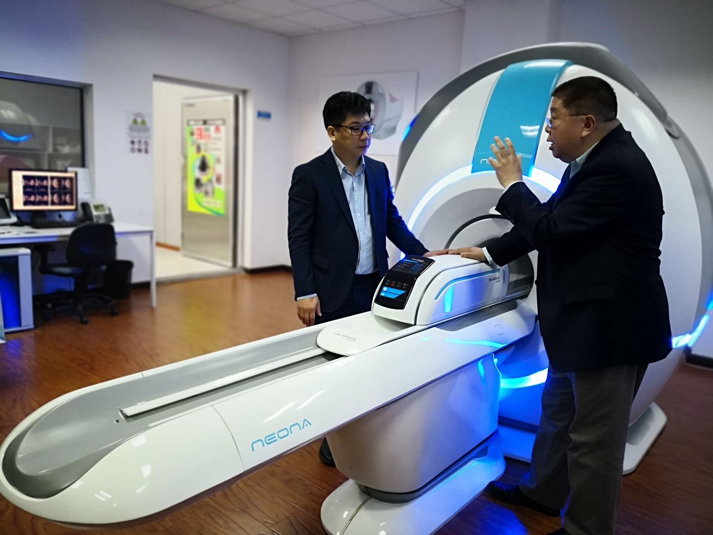 馬啟元(右)與公司團隊成員交流兒科機的情況。謝衛群 攝 人民網上海4月14日電 (記者 謝衛群)還記得進博會上網紅產品嗎?迷你磁共振儀!這個可人的小機器可以給新生兒做磁共振檢查! 進博會之后,已有20多家醫院達成嬰幼兒專用磁共振診斷系統采購意向。這款嬰幼兒磁共振是可以安裝于新生兒重癥監護室…[詳細]