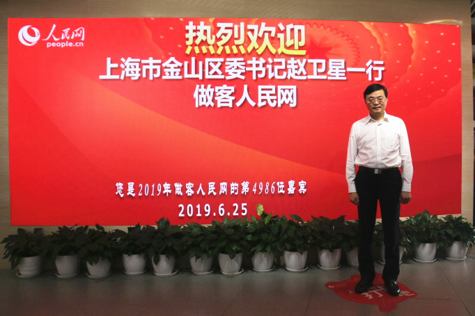 大家好,歡迎各位關注人民網訪談節目。今天在演播室非常榮幸為大家請到了上海市金山區委書記趙衛星,請趙書記和我們一起聊一聊金山的發展。趙書記歡迎您,和網友打個招呼吧。