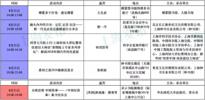 圖片說明:2019上海書展主會場(攝影:汪偉秋) 東方網記者包永婷8月20日報道:位于239米高空的朵云書院旗艦店迎來首場閱讀活動,故事將作家羅伊·雅各布森與讀者連接在一起;巴金《〈第四病室〉手稿珍藏本》上海書展首發,至此“人間三部曲”手稿本得以出齊;新晉茅盾文學獎得…