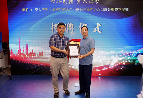 在授聘儀式上,紫竹高新區常務副總兼紫竹創業孵化器董事長夏光向上海交大航空航天學院常務副院長、講席教授吳樹范頒發聘書,聘請吳樹范常務副院長擔任創新中心評審委員會專家組組長,組建優質專家智庫,為入駐的軍民融合科創項目提供真知灼見。