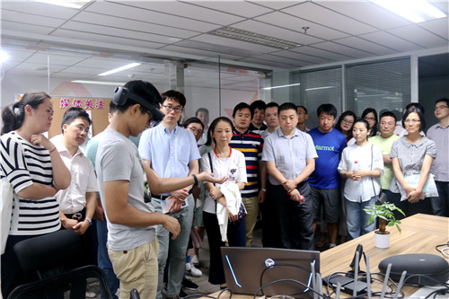 接著,代表團參觀了孵化器優秀企業凡米智能,了解物聯網技術在智慧社區管理方面的具體應用,對智慧社區發展未來代表團的老師們展現出了濃厚的興趣,之后代表團來到境騰信息科技公司,現場體驗了MR混合現實技術對未來信息溝通方面帶來的便捷和高效。對于紫竹科創企業的先進技術以及紫竹孵化器優質的創業扶持政策,代表團的領導們都贊不絕口。