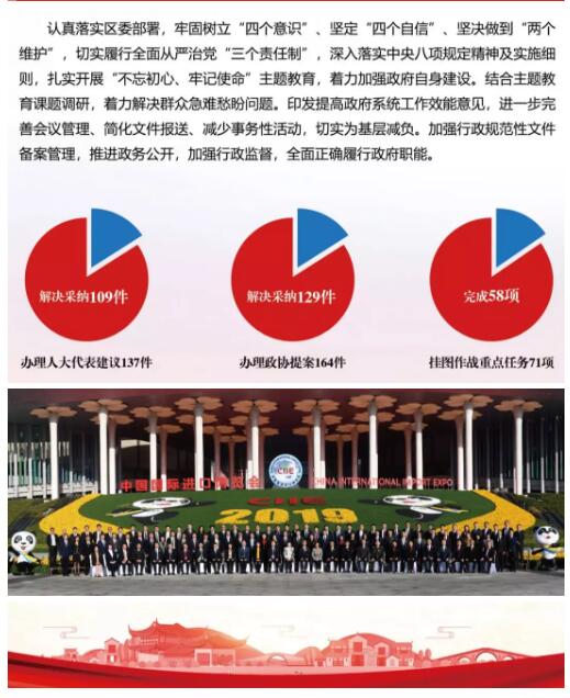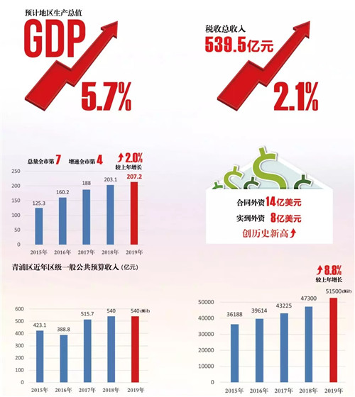 2019年,青浦區政府在區委堅強領導下,堅持以習近平新時代中國特色社會主義思想為指導,認真貫徹習近平總書記考察上海重要講話精神,全面落實黨中央國務院、市委市政府和區委部署,不忘初心、牢記使命,深入貫徹兩大國家戰略,實施重點工作掛圖作戰,抓落實、抓推進、抓突破,經濟社會保持平穩健康發展,基本完成區五屆人大四次會議確定的目標任務。