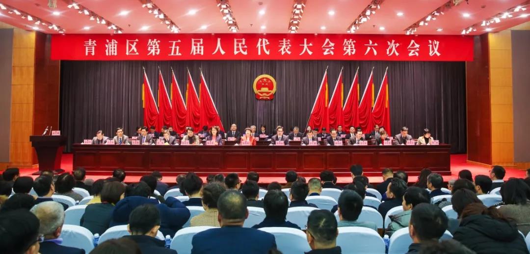 青浦區第五屆人民代表大會第六次會議1月8日在區委黨校中心會場隆重舉行。大會執行主席趙惠琴、朱明福、楊小菁、蔣仁輝、陶夏芳、胡海民、何強、趙宏林等在主席臺就座。區委副書記、區長余旭峰,區政協主席李華桂等區領導出席會議。