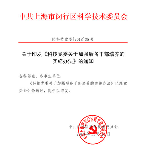 為深入貫徹《關于進一步激勵廣大干部新時代新擔當新作為的意見》(中辦發〔2018〕29號)和《關于進一步激勵廣大干部新時代新擔當新作為的實施意見》(閔委發〔2018〕49號)、《閔行區關于加強優秀年輕干部選拔培育管理使用的實施辦法》(閔委辦發〔2018〕20號)等文件精神,區科技黨組積極探索創新,不斷健全完善科級后備干部選拔、培育、管理、使用的全鏈條工作機制,加快高素質專業化年輕干部隊伍建設步伐,推動科委科協各項事業可持續、快速發展,努力打造一支數量充足、結構合理、質量優良的科級后備干部隊伍。
