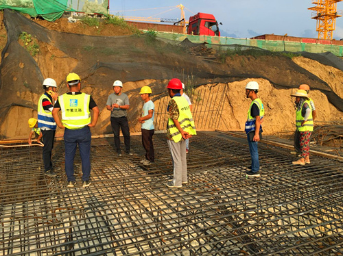 項目經理萬運帥首先對工地現場外圍環境、外架搭設、臨邊防護、現場清理、鋼筋綁扎、成品養護、現場支模、樓梯支護等質量安全及文明施工工作都進行細致查看,對亮點部位和好的做法進行現場交流學習,對不合格、不合理、存在問題的地方現場分析原因,并提出預防和整改措施。隨行人員對現場亮點、優質部位及缺陷、有問題的地方進行一一拍照記錄。