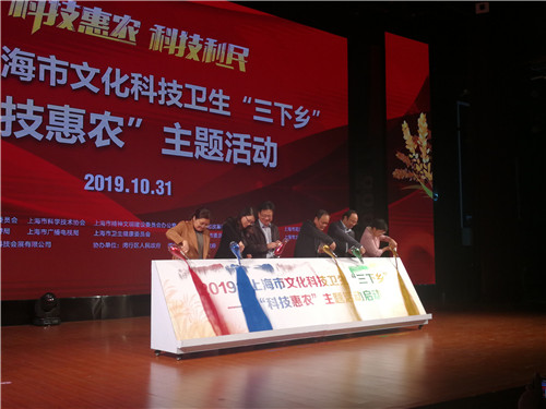 最后,上海市科學技術委員會總工程師陸敏、上海市農業科學院副書記徐偉林、中共上海市委宣傳部宣傳處處長郭俊、上海市科學技術協會普及部副部長富曄、閔行區科委黨組書記、主任李麗、閔行區華漕鎮黨委書記吉玉萍共同啟動2019年上海市文化科技衛生“三下鄉”科技惠農主題活動。