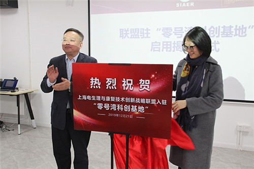 上海市科學技術協會馬興發書記、閔行區科學技術委員會李麗主任為上海電生理與康復技術創新戰略聯盟入駐“零號灣科創基地”新址啟用揭幕。
