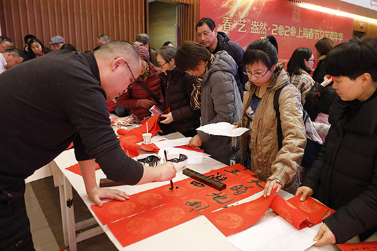 人民網上海1月13日電(王文娟)這幾日,上海金山文化館洋溢著歡樂喜慶的濃濃“年”味。春“藝”盎然·2020上海春節文藝嘉年華系列活動11日至12日在金山舉行,同期,還在金山嘴漁村舉辦第三屆上海春聯大會,與漁民共話春節、共賀新年。