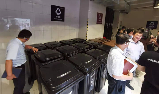 2019年6月,一位代表在檢查垃圾分類情況。 巨云鵬攝