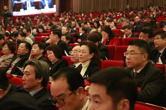 上海市政協十三屆三次會議現場,委員們在聆聽報告。 龔莎攝