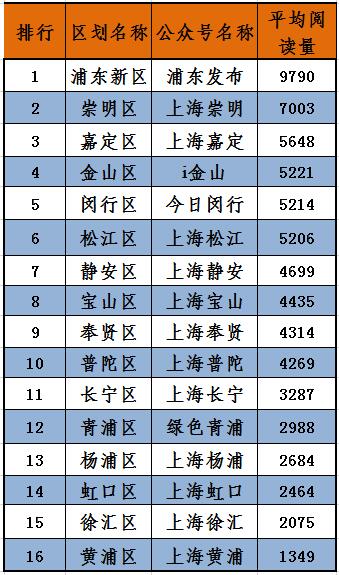 人民網上海頻道小編匯總了上海16區官方微信的活躍粉絲數、總閱讀量、平均閱讀量、活躍粉絲數、熱詞等指標進行統計分析。來看看,你們區公號上榜沒?