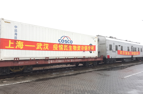 加強重點地區生活物資運輸成為當前鐵路重點工作之一。長三角鐵路開辟綠色通道,做到快速受理、快速配空、快速裝車、快速掛運、快速輸送“五個快速”,確保生活等重點物資以最快速度運達疫區。2月10日,專為武漢市調撥的首批8個冷藏集裝箱、196噸中央儲備凍豬肉,由上海蘆潮港站緊急發出運往武漢。從2月10日至2月14日,鐵路部門將在5天內從上海調撥2000噸凍豬肉專供武漢儲備,做好武漢等重點地區豬肉市場應急保供工作。