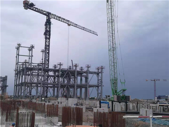“受疫情影響,準備從國內發運的2號鍋爐塔吊的船期從2月推遲到3月,我們緊急在土耳其當地籌措了履帶吊,用履帶吊進行2號鍋爐第一層、第二層鋼架的吊裝,這樣能搶出一些時間。等國內的塔吊到位后,再用塔吊開展第三層以上的吊裝!蓖鹾蒲a充說道。