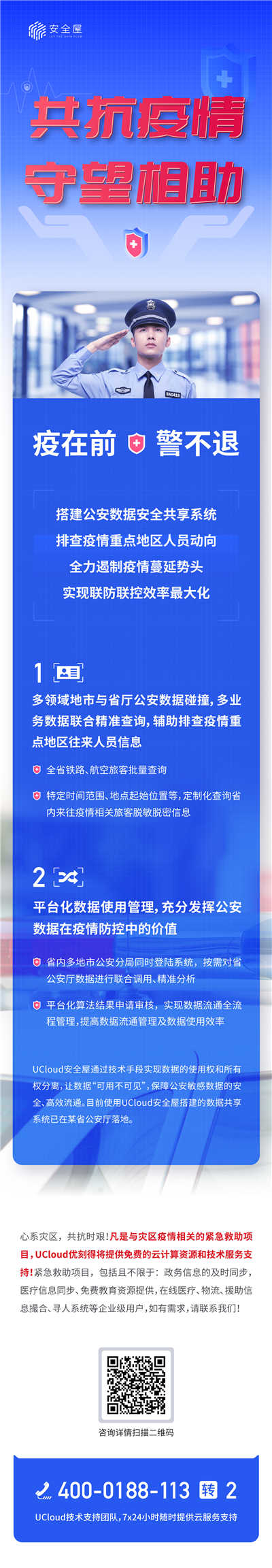 其中,典型案例是UCloud通過安全屋技術助力山東省公安部門排查疫情重點地區往來人員信息。同時,UCloud基于多年積累的云計算技術、資源和能力也在其他疫情防控中不斷貢獻自己的力量。