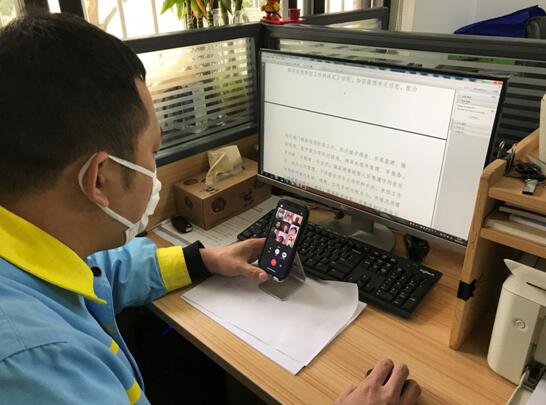 部書記張猛通過視頻與居家隔離員工進行溝通,了解居家隔離員工需求和困難