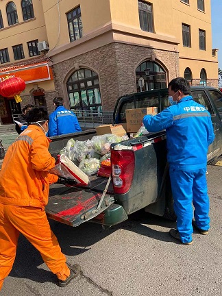 此外,長興家園社區也活躍著一批江南藍衣裝備的“超人”,耀眼的藍色工作服,加鮮艷的紅色志愿者馬甲,他們便是服務于社區的江南船廠志愿者。志愿者的工作瑣碎而辛苦,小區的每一個角落,幾乎都留下了他們奔波的足跡。他們戴著口罩,輾轉、搬運、爬樓,直至將物資送到居家觀察員工的家門口,并叮囑該員工在微信群內簽收反饋……他們每天都要步行4萬多步,肩扛手抬,將溫暖送到每個江南員工。志愿者們的工作已從2月10日一直持續到現在。