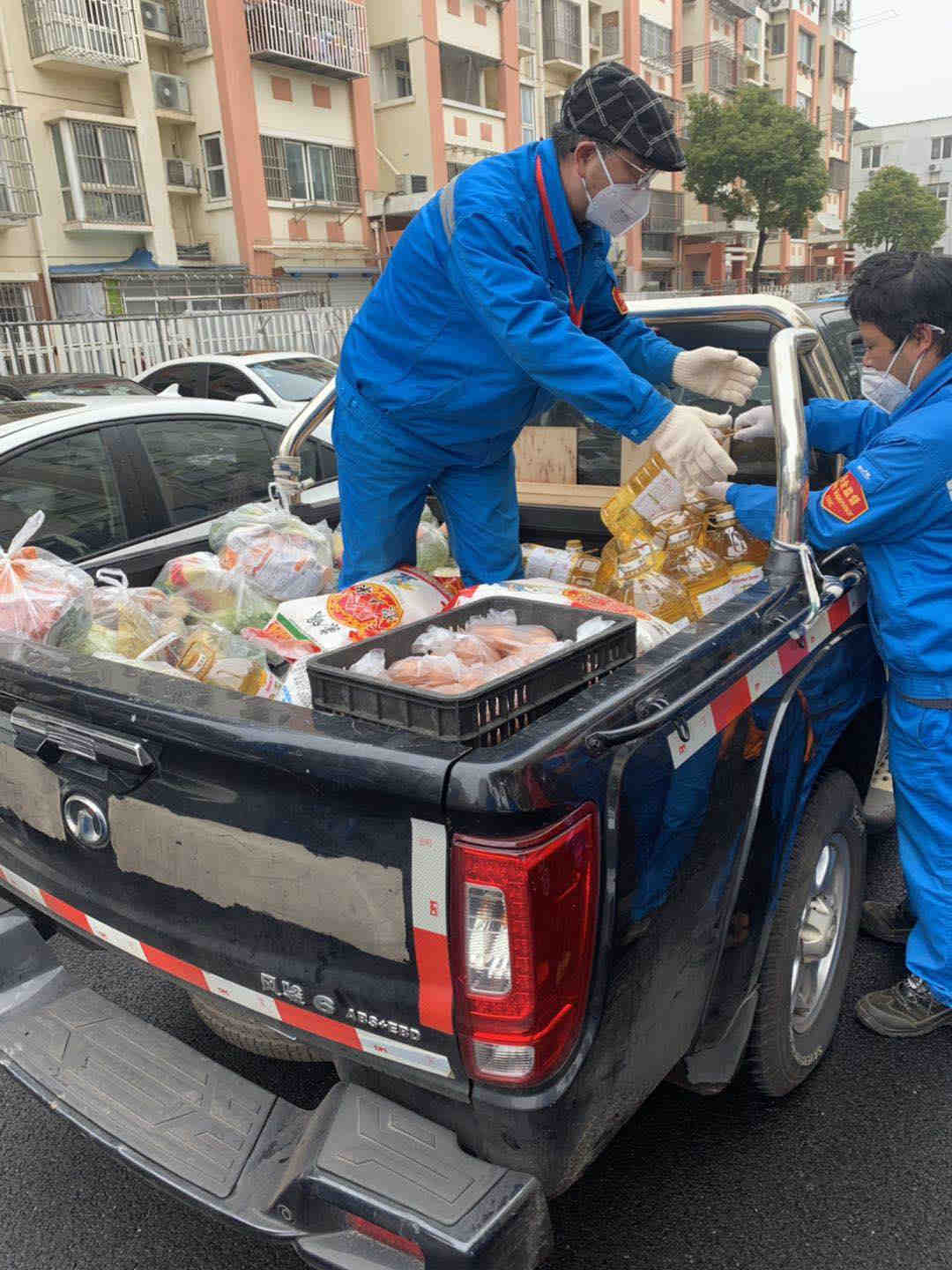 此外,長興家園社區也活躍著一批江南藍衣裝備的“超人”,耀眼的藍色工作服,加鮮艷的紅色志愿者馬甲,他們便是服務于社區的江南船廠志愿者。志愿者的工作瑣碎而辛苦,小區的每一個角落,幾乎都留下了他們奔波的足跡。他們戴著口罩,輾轉、搬運、爬樓,直至將物資送到居家觀察員工的家門口,并叮囑該員工在微信群內簽收反饋……他們每天至少步行4萬步,肩扛手抬,將溫暖送到每個江南員工身邊。志愿者們的工作已從2月10日一直持續到現在。