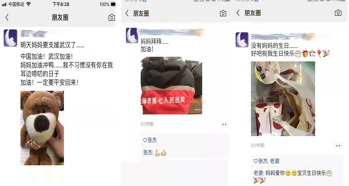 身為上海市第七人民醫院護士長的妻子去武漢馳援。