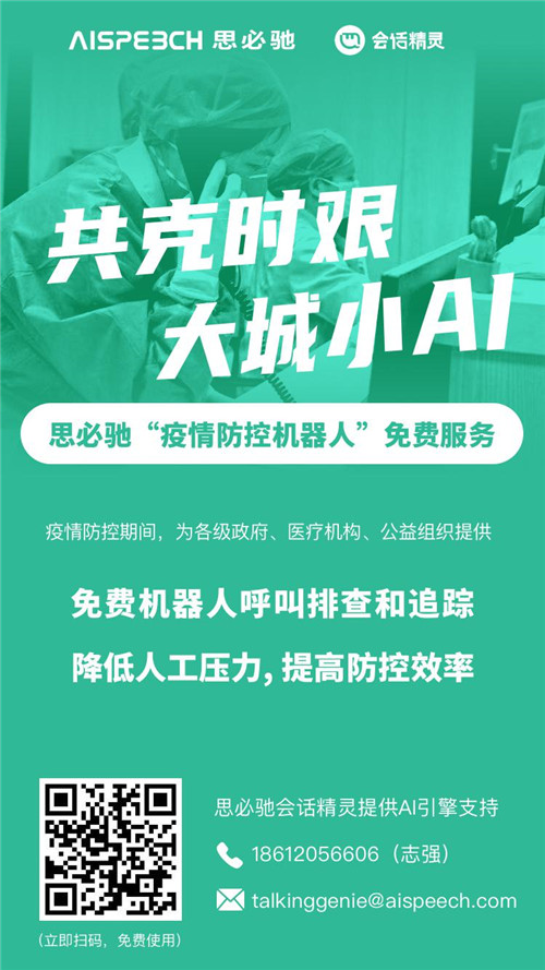 “疫情防控機器人”是國內領先的對話式人工智能平臺公司思必馳,針對新型冠狀病毒肺炎疫情特別定制研發的一款智能語音外呼機器人。