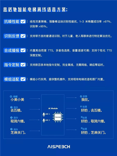 針對高感染風險的公共場所——電梯, 2月5日,思必馳于國內率先發布“智能電梯離線語音方案”,打造公眾場所“無接觸式”的人機交互。