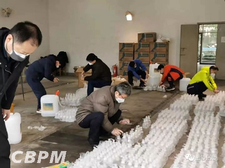 除了社會志愿服務,上鈔人也積極主動地參與到為企業復工做準備的志愿活動中來。為了保障企業正式復工后的消毒防疫工作,公司工會、團委組織青年職工利用假期時間,到公司協助將大桶的酒精、洗手液等分裝成小瓶,以方便各部門自行為屬地消毒。在7名志愿者和前來幫忙的黨員干部的共同努力下,10個小時內就完成了4800瓶酒精和洗手液的分裝工作。而為了防止因測溫人手不足,導致職工上班時在大門口聚集,上鈔青年們也紛紛響應團委號召,要參與職工體溫測量工作。目前,20人的臨時小隊已經摩拳擦掌、整裝待發。