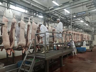 疫情爆發后,為保證市場豬肉的供應,維持上海市場豬肉價格的穩定,上海五豐上食食品有限公司黨支部明確“防疫情保供應”工作要求,積極與政府溝通獲得提前復工審批許可,采用輪班制合理安排生產,每兩天進行一次屠宰生產,每次屠宰量約600頭,并對所有采購的豬肉進行層層防疫檢查和消毒,從根本上保障上海廣大市民菜籃子的安全和供應。