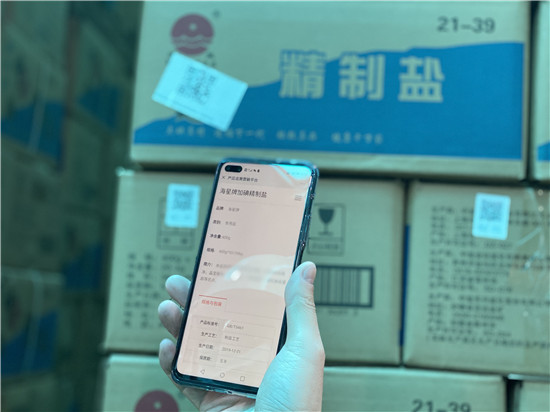 掃碼可以追溯食鹽產地等信息。(王文娟/攝)