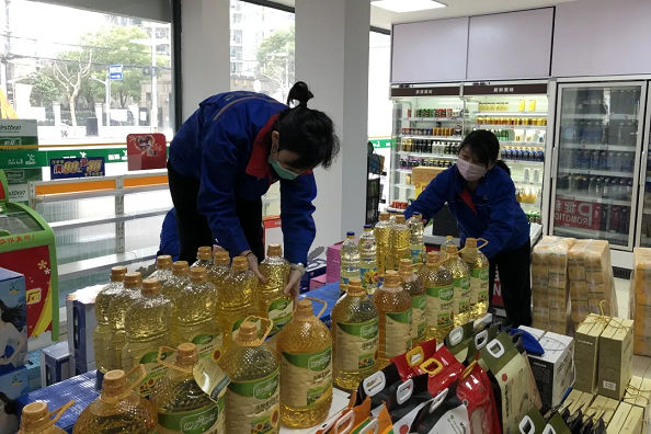 零售分公司黨員干部發現近期加油站內米糧油及速食食品銷量占比較高,為幫助提升銷量,大家紛紛前往責任區加油站點對點指導,幫助調整商品陳列結構,用牛奶、食用油和米打造特色暢銷商品地堆,迎合目前消費需求,讓顧客一進店就能選購到需要的民生食品。