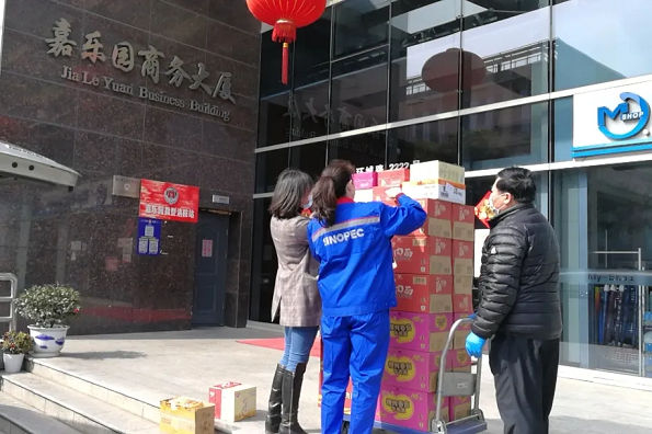 嘉青分公司通過黨總支委員定點指導、黨支部分片包干、黨員互助互查等措施,督促指導加油站工作。經營管理部黨員劉晨在瀏覽朋友圈時了解到某單位復工消息,主動詢問,為其上門配送各類食品40箱。