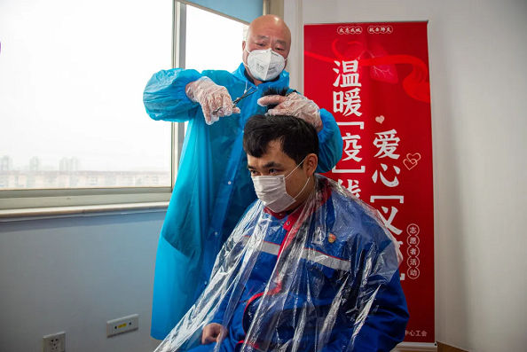 中心工會還組織了愛心“義剪”,有專長的“理發師”爭先當志愿者,放棄休息時間為員工理發,解決了大家的實際問題。