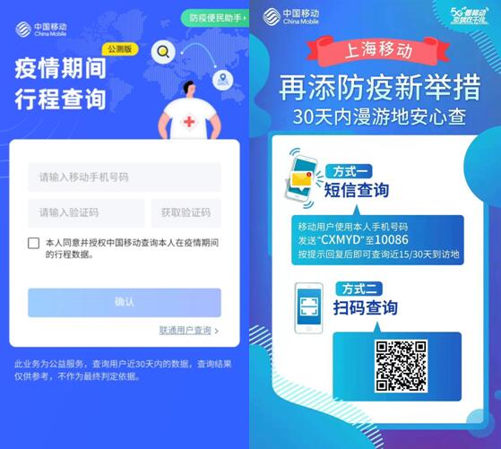 上海移動市場經營部免費提供漫游地查詢,助力疫情信息核驗