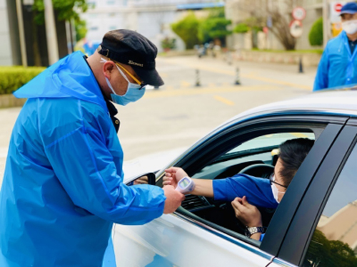 盛苑、行政黨支部發揮團隊作戰力量,督導測溫隊伍實施入廠測溫,嚴格管理下屬外協公司及人員,解決了公共區清潔消毒、防疫用品發放和工作餐安排等具體問題,最大范圍內為職工提供安全的后勤保障。
