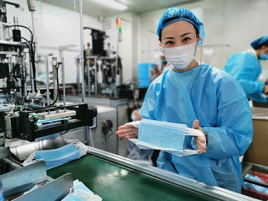 盡管事先做足了心理準備,但當她走進車間的那個瞬間,還是被繁忙的流水線震撼住了——快速轉動的機器、轟鳴的設備聲……作為質檢人員,奚穎娜需要8小時全程站在機器旁,盯著流水線上一批又一批藍色口罩,捕捉瑕疵,確保質量。一天下來,汗水濕透了衣服,肩膀酸疼得抬不起來,耳朵也因長時間在噪音環境下而嗡嗡作響。奚穎娜感嘆于生產一線的不易,同時更為自己生產了近3萬只口罩助力戰“疫”而自豪。家人都說:“你是我們家當之無愧的‘女神’!