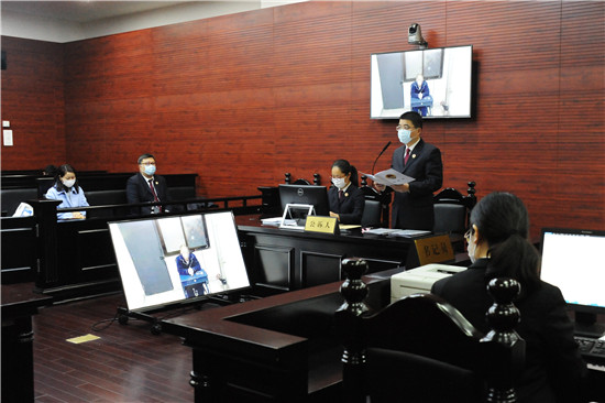 庭審借助遠程視頻,公訴人、法官與看守所的被告人進行實時對話。整個審理過程嚴肅高效,庭審畫面清晰流暢,在保證庭審質量的同時大大提升了辦案效率。(劉曉曦)