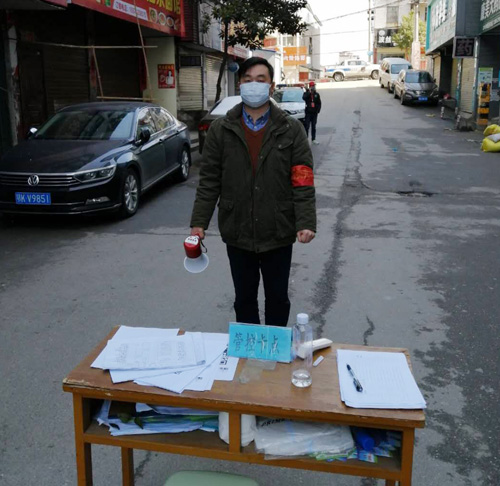 大年初一前后,孝感市疫情升溫,所有人都措手不及,社區緊急發出通知招募志愿者負責物資運送、垃圾整理、小區出入口管理等工作。付俊朝看到通知,第一時間打電話報了名。