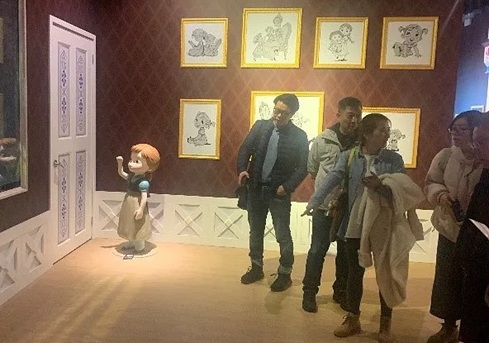 隨后,黨員們來到《冰雪奇緣:夢幻特展》觀展。每個展區都經過精雕細琢輔以環形投影,讓人身臨其境,體驗夢幻與感動,F場有200多件由迪士尼動畫工作室提供的珍貴的美術畫稿,這些奇幻巨制背后的細節和匠心,感動了在場的每一位黨員,大家與艾莎、安娜一同開啟了一段絢爛的魔法冒險。