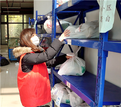 黨員沈奐在金地一村快遞臨時寄存點整理