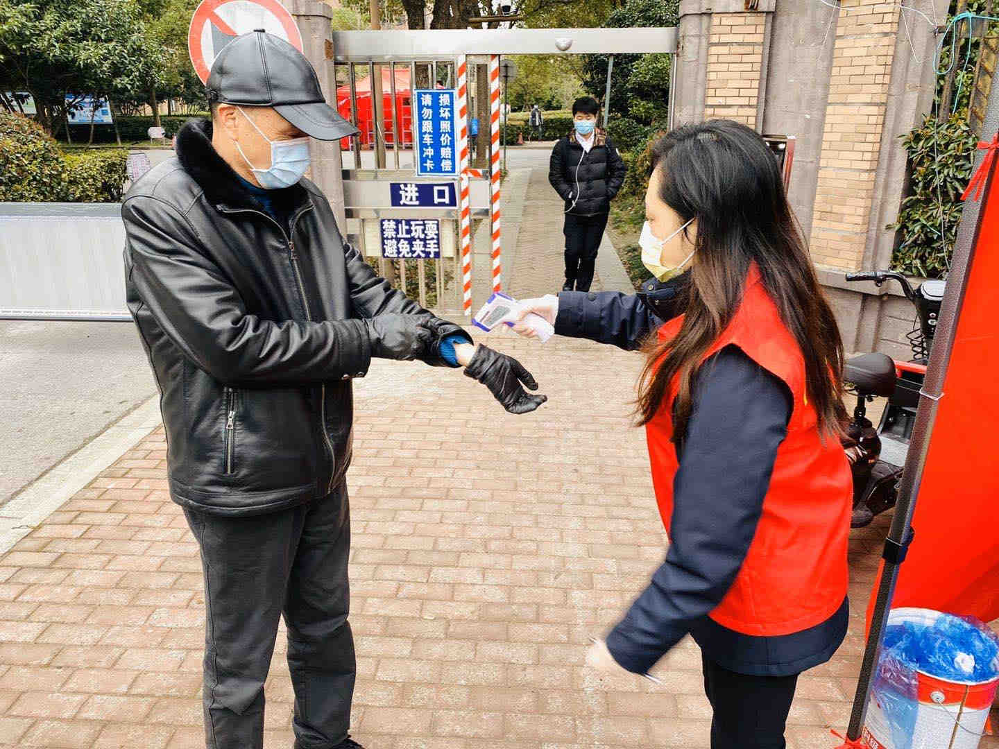 營銷黨支部書記盛琳在新凱四村測溫