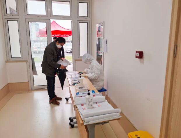 上午9點,該檢測點開始檢測。但當記者8點15分抵達時看到,已有不少預約檢測的員工早早等候在此。北京華恒通科技有限責任公司上海分公司的王先生,4月8日剛剛回到上海,就被公司安排前來接受檢測。在完成了體溫測量、信息登記審核后,王先生很快就進入采樣區接受采樣。
