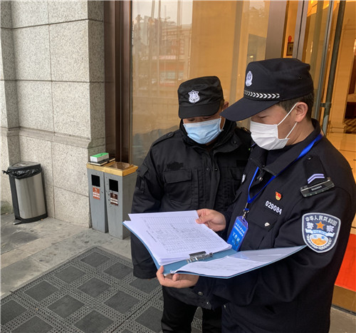 等到所有人辦理好入住后,安保組便進入全天候警戒狀態,必須嚴格守住每個隔離人員的房門。每個房間門上面都有一個門磁報警系統,與指揮部直連,通過后臺數據管理系統,可以看到每扇房門開關的時間。如果是非正常時間開門的話,會在系統內報警,工作人員會第一時間上門了解情況。此外,由于酒店人手不足,監控值班工作排不出人,安保組也第一時間挺身而出,由民警與特保隊員主動承接下了監控的工作,“做隔離點的‘守護者’,我們責無旁貸”。