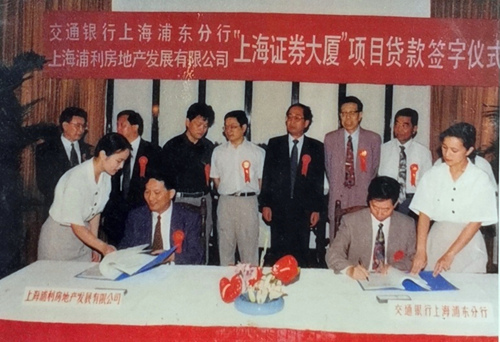 1994年,交通銀行上海浦東分行參加“上海證券大廈”項目貸款簽字儀式