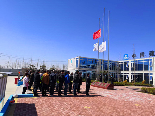項目全體員工于10時準時舉行降旗儀式,伴著現場發出的鳴笛聲,所有人都表現出了難掩的沉重情緒和無盡的由衷敬意。片區黨支部書記呂福磊作為本次儀式的主持人說到:“疫情前面,涌現出了一個個勇敢無畏的英雄,發生了一個個觸動內心的故事,其中有些人為抗擊疫情犧牲了,他們是可敬的,我們今天舉行降旗儀式為他們默哀,愿逝者安息,愿生者奮發,愿祖國昌盛!彪S后,所有人都異口同聲,發出了這滿懷希冀的祝愿。ㄖx丙旭)