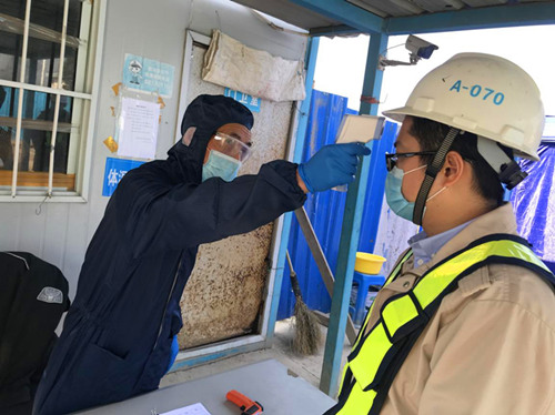 在項目防疫措施落實階段,紀檢監督組積極參加到項目防疫工作中去,一是組織黨員、青年職工成立防疫突擊隊,配合項目落實各項防疫措施;二是組織項目職工進行疫情防控知識學習、提高個人防護意識;三是對項目出入人員進行體溫測量監管,并對項目防疫物資儲備、發放以及人員健康檔案,消毒記錄等各類臺賬進行實時監查,確保項目防疫措施落到實處。
