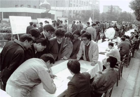 招聘簡章發布兩周后的早晨,天氣寒冷,而上海海運學院門口已排起了長龍,咨詢桌前人頭攢動,圍得水泄不通,F場報名者中經驗證合格者有1265名,加上各省市來函報名合格的共計1814名。