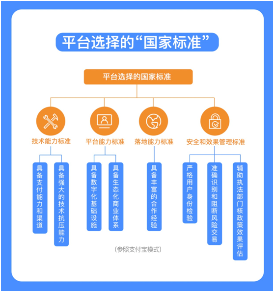 報告還建議,可參照支付寶模式設立消費券發放標準。政府在選擇數字消費券發放平臺的時候,應該遵從 “四大標準”“八大能力”,并確立消費券發放的國家標準,為大規模、長期化發券提供技術保障。數字消費券政策實現預期目標的首要前提是用戶的實名制,確保消費券發放至真實及特定消費手中,選擇實名制程度不高或者合作商戶有限的平臺,容易導致資金流失、民眾參與度不足、消費券發放時間長、核銷率不高等問題。同時,數字消費券要嚴防黑灰產,保障資金安全,應選擇具備金融級風控能力的平臺。