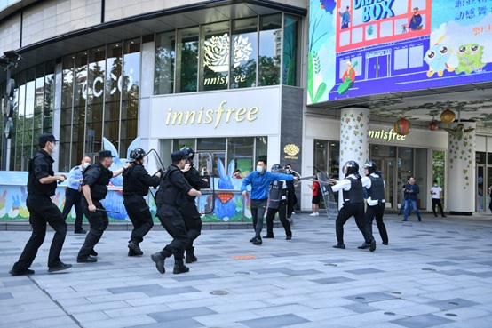 公安特警、派出所、商圈企業等多家單位參與演練。